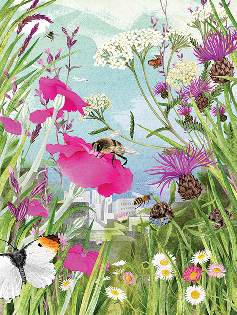 Hannah’s unique creative process begins with pencil sketches that are traced, before meticulously hand-cutting each intricate segment of her illustration into a stencil. She then uses vibrant inks to fill these stencils with texture and colour. Hannah digitally enhances the separate elements of her illustration and rearranges them to create her final composition. This process allows her to create highly textured illustrations, capturing the look and feel of wildlife, natural objects and landscapes, in a distinctive colour palette.
