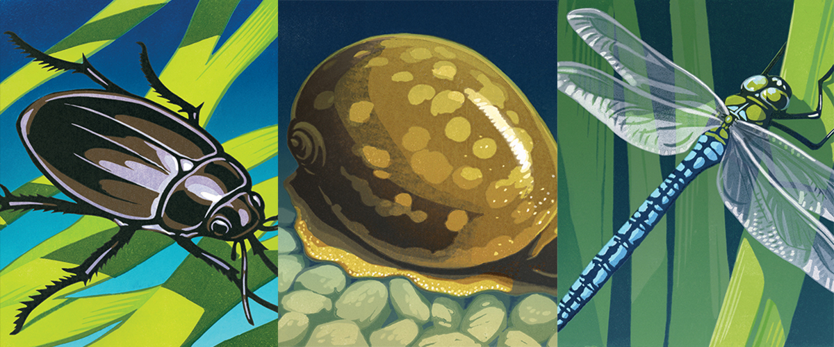 Chris Wormell has worked with Royal Mail many times over the years and the most recent Post and Go series is by far his biggest stamp project. From heraldic beasts, freshwater lakes and river life, ladybirds to hibernating animals and beyond.