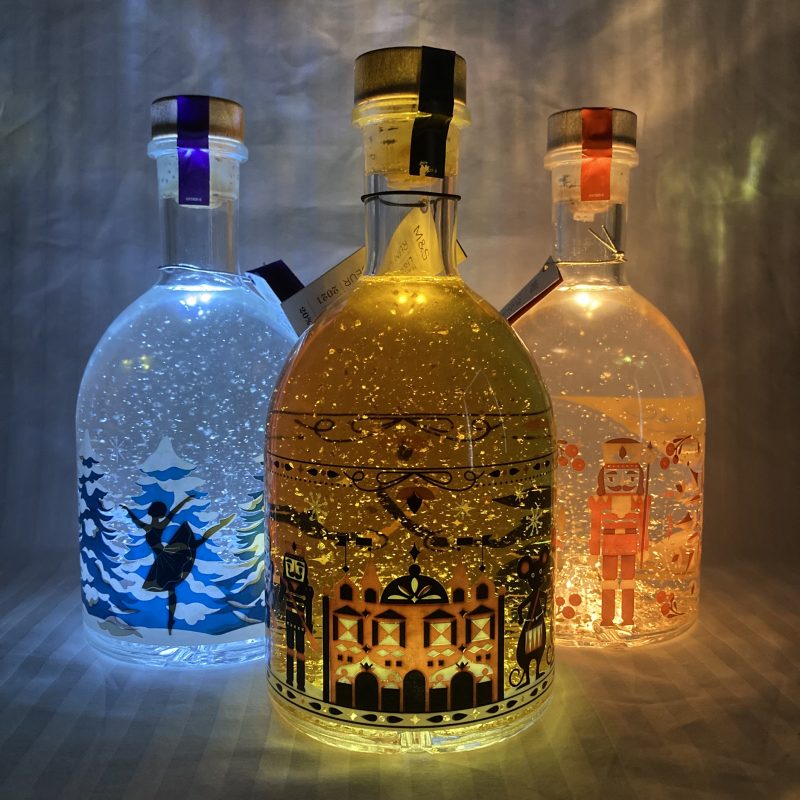 Darling Clementine illustrated an amazing range of M & S’s Christmas snow globe Gin & Rum Liqueur’s, with each bottle containing a small light that beautifully illuminates Darling Clementine’s illustrations as gold and silver flakes swirl in the behind them.