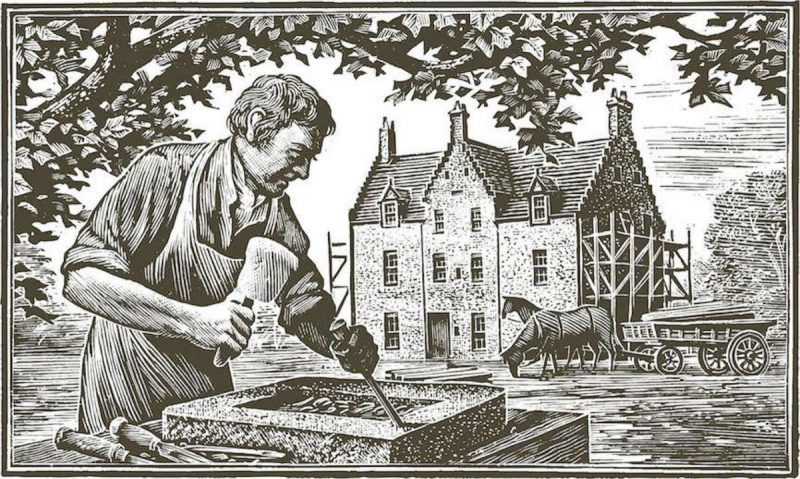 The project saw Andrew producing beautiful woodcut illustrations that tell the story of Captain John Grant, and the transformation of the wild landscape of his estate into the “garden of the Elchies”.